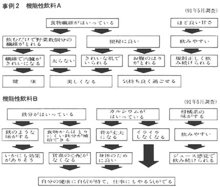 | A カルシウムがいっぱい ↓ OB ウエハースを食べてカルシウムがとれる ↓ SB コーンフレークより喜んで子供が栄養がある朝食をとる ↓ V 子供の健康に配慮する母親としての満足感が得られる |